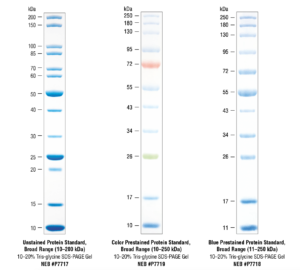 Nutzen Sie bereits NEBs Protein Marker für Ihre SDS-PAGE oder Westernblots? Bei uns haben Sie die Wahl zwischen zwei prestained Varianten und der nicht-vorgefärbten Version für besonders genaue Größenzuordnungen. Allen gemeinsam ist die besondere Reinheit der verwendeten Proteine für besonders scharfe Banden.