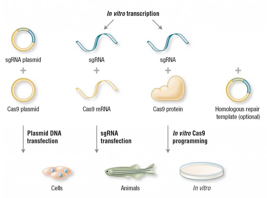 Different approaches are possible to deliver the Cas9 protein and the sgRNA into the cell during gene editing experiments: