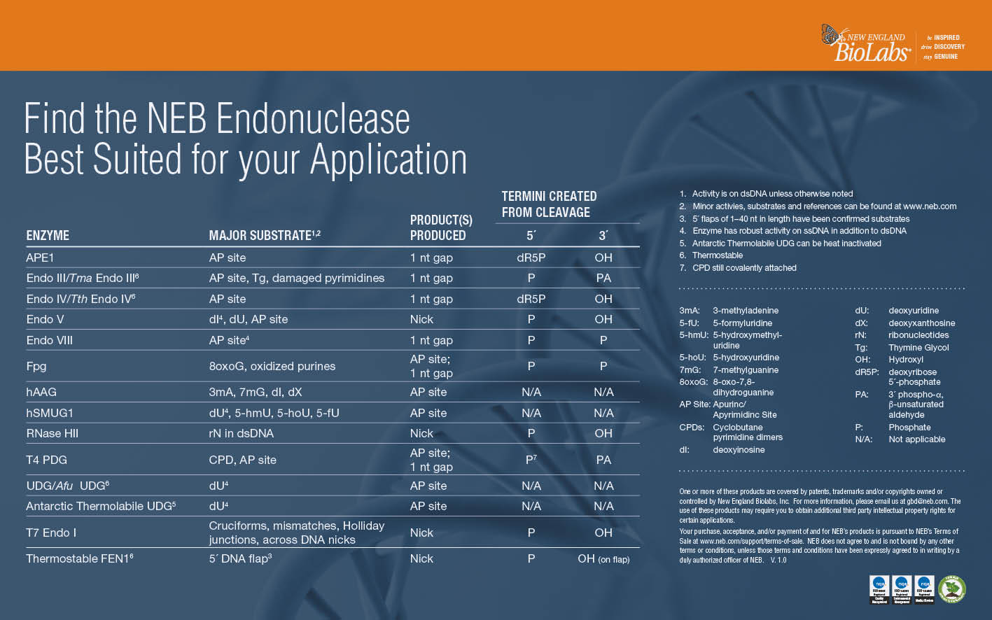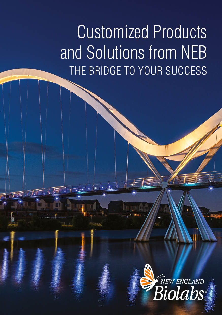 Stay up-to-date! Order our current catalog, posters and prints free of charge. NEB Catalog & Technical Reference 2025/26 Order Print Catalog Incl. Buffer Chart Poster 2025/26The NEB catalog is published every 2 years. Download current Catalog NEB Aktuell Order & subscribe NEBs customer magazine (German).2 issues per year. Download latest issue as PDF. NEB Year Planner Order Plan your year 2026 with NEB! Please select one or more topics to show additional literature: Posters & special publications Buffer Chart Poster 2025/26 Order Find the optimal NEBuffer and approximate activity for each restriction enzyme. RNase-free Zone Sticker Pack Order Stickers for identifying areas and equipment specific to RNase-free zones in your laboratory. A History of Molecular Cloning Order An overview of milestones in the field of molecular cloning. RNA Metro Map Order Learn more about the various RNA structures and recent applications. NGS Library Prep Workflow Poster Order All NEBNext NGS Library Prep workflows on a single poster. Endonuclease Card Order Find the endonuclease best suited for your application. Electrophoresis Marker Poster Order NEBs DNA, RNA & Protein Marker / Ladders. Cloning & Synthetic Biology Restriction Endonucleases Technical Guide Order Product information and technical reference charts on the wide range of restriction enzymes available from NEB. PDF Download Molecular Cloning Tech Guide Order Help with product selection, protocols, tips for optimization and trouble-shooting. PDF Download DNA Ligase and DNA Ligase Master Mixes Order DNA ligases and ligases master mixes available from NEB. PDF Download DNA Assembly & Synthetic Biology Order Learn which products and protocols you'll need to get started with synthetic biology. PDF Download NEBuilder HiFi DNA Assembly Order Learn about the advantages of NEBuilder HiFi for your DNA assembly and cloning. PDF Download Golden Gate Assembly Order Multiple DNA fragment assembly with high efficiency and accuracy. PDF Download DNA Amplification incl. PCR & qPCR Luna Universal qPCR & RT-qPCR Reagents Order Learn about the advantages of choosing Luna products for your qPCR & RT-qPCR. PDF Download PCR Reagents Order The PCR brochure provides product information on the wide range of DNA polymerases available from NEB. PDF Download Q5 High-Fidelity DNA Polymerase Order Learn about the benefits of using Q5 High-Fidelity DNA Polymerase. PDF Download OneTaq DNA Polymerase Order Learn about the benefits of using OneTaq DNA Polymerase. PDF Download Isothermal DNA Amplification Order Explore the possibilities of isothermal amplification with NEB's enzymes for LAMP, RT-LAMP, and POC diagnostics. PDF Download Next Generation Sequencing NEBNext UltraExpress Order NEBNext UltraExpress Library Prep Kits - Streamlined for speed Broschüre als PDF herunterladen NEBNext Ultra II Reagents & Kits Order The core of your NGS library prep. PDF Download NEBNext for Illumina DNA Sample Prep Order NEBNext DNA sample preparation products for sequencing on the Illumina platform. PDF Download NEBNext for Illumina RNA Sample Prep Order NEBNext RNA sample preparation products for sequencing on the Illumina platform. PDF Download NEBNext for Ion Torrent Order NEBNext Kits for Ion Torrent. PDF Download NEBNext Single Cell RNA Analysis Order Solutions for Single Cell RNA Library Prep. PDF Download NEBNext rRNA Depletion Order Learn more about the NEBNext products available for RNA depletion. PDF Download NGS Target Enrichment Order Learn more about NEBNext Direct’s unique, capture-based approach to NGS target enrichment. PDF Download NEBNext Direct Genotyping Solution Order Learn about NEBNext Direct’s cost-effective, high-throughput, sequence-based target genotyping solution. PDF Download NEBNext Enzymatic Methyl-Seq (EM-seq) Order The enzymatic methyl-seq workflow developed at NEB provides a much needed alternative to bisulfite sequencing. PDF Download DNA and RNA Purification Monarch DNA Purification Order It’s time to transform your DNA purification experience! PDF Download Monarch Nucleic Acid Purification Order It’s time to transform your RNA purification experience! PDF Download Protein Expression & Purification Protein Expression Order Advanced tools for protein expression and purification. PDF Download Purification Beads, Columns & Resins Order Small-scale, high-throughput applications and large scale purification strategies. PDF Download Genome Editing Genome Editing Order Tools for CRISPR / Cas studies. PDF Download RNA Biology RNA Technical Guide Order Find in depth information on tools designed to streamline your RNA workflows. PDF Download RNA Synthesis Order Learn more about NEB's products for RNA synthesis, which range from template generation to poly(A) tailing. PDF Download Reverse Transcriptase Portfolio Order Products, Kits, and Mixes for optimal Reverse Transcription PDF Download Glycobiology Glycoproteomics Technical Guide Order In-depth information, including protocols, technical tips, FAQs and application notes (PDF Download only!). PDF Download Glycoproteomics Protein Modifications Order NEBs suite of endo- and exoglycosidases, and deglycosylation enzymes. PDF Download Rapid PNGase F Order Speed up your antibody deglycosylation step. PDF Download Epigenetics Epigenetics Order Understanding histone & DNA modification. PDF Download Competent Cells Competent Cells Order Competent cell strains for cloning and protein expression. PDF Download Cellular Analysis Cellular Imaging and Analysis Order Labeling technologies for studying the function and localization of proteins in cells. PDF Download Custom Solutions / NEB as a supplier for Pharma, MDx and more Customized Solutions Order Bulk & OEM. Broschüre als PDF herunterladen Supporting Molecular Diagnostics Order NEB as a supplier for MDx. PDF Download R&D Manufacturing Support Order Support for the Biotech and BioPharma Industry. PDF Download GMP-Grade Reagents for RNA Synthesis Order Tools to take