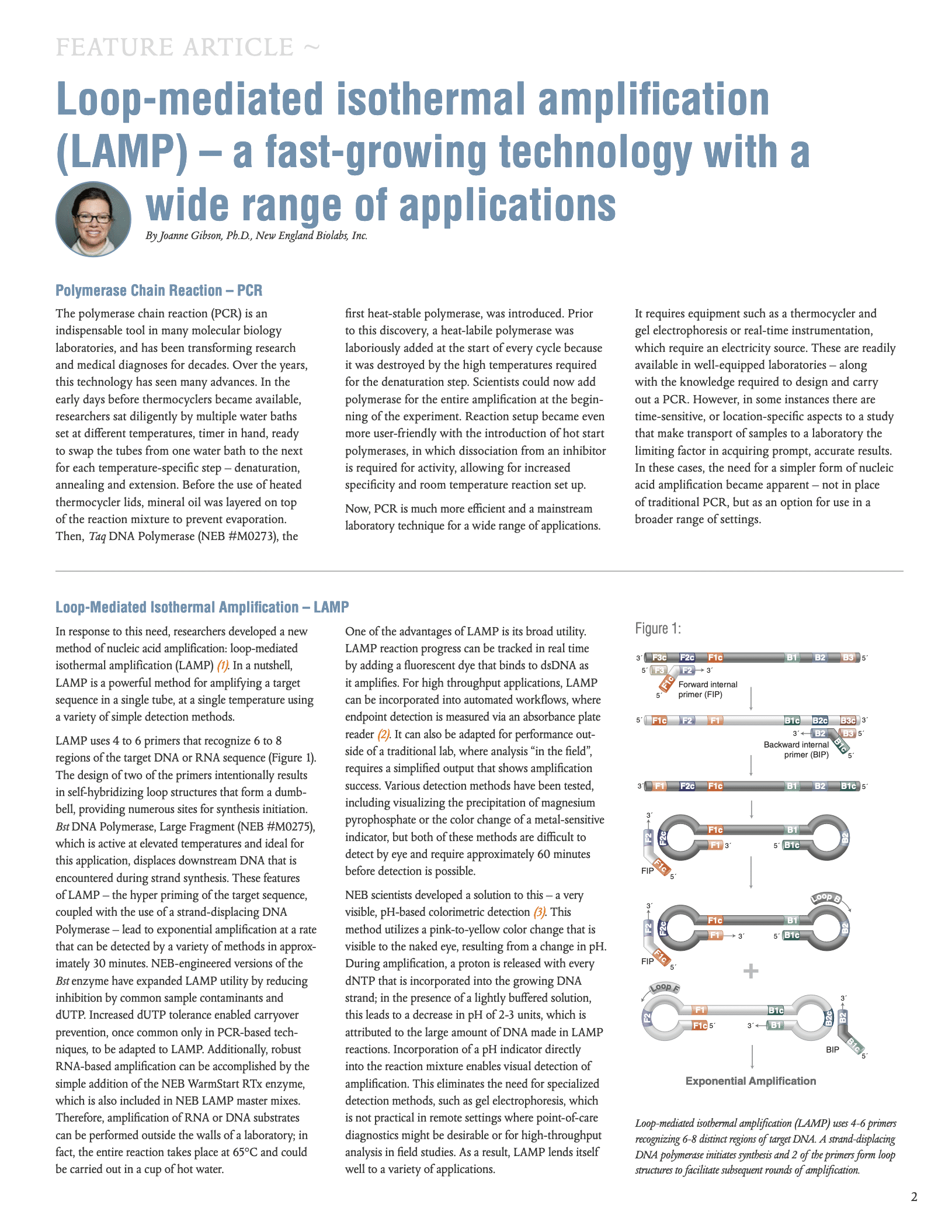 NEB offers a range of different tools for your LAMP/RT-LAMP toolbox with ~20 min protocols that serve as a fast and reliable alternative to classical PCR in any molecular biology lab or even in field trials or DNA testing outside a lab.