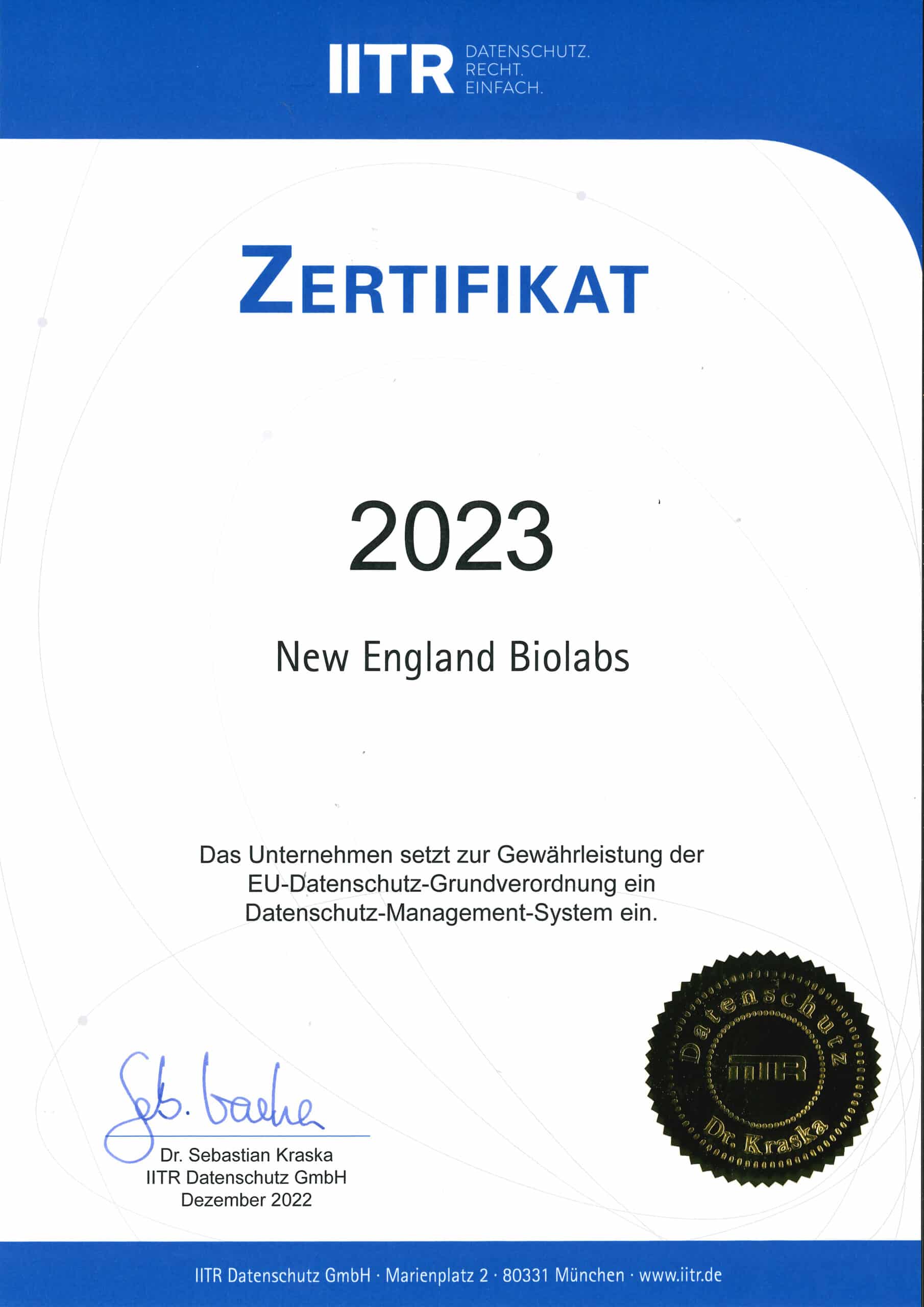 Please be aware that other websites, including those linked from our web page, can also collect personal data about you. Our privacy policy does not cover the privacy practices of linked websites. New England Biolabs GmbH takes no responsibility for the privacy and security of data that you share with third parties, whether through a linked website or otherwise.