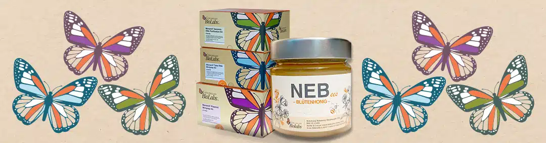 *Der Rabatt von 20% bezieht sich auf den Listenpreis der Monarch Nukleinsäure Aufreinigungskits. Bei der Bestellung von mindestens einer L-Packung oder drei S-Packungen der Monarch DNA oder RNA Aufreinigungskits erhalten ein Glas Honig gratis dazu. Dieses Angebot gilt nicht für eigenständige Kit-Komponenten wie Puffer oder Säulen. Die Aktion ist gültig bis zum 15. Juli 2025 und kann nicht mit anderen Rabatten kombiniert werden. Gilt nur für NEB Kunden in Deutschland und Österreich und nur solange der Vorrat reicht.
