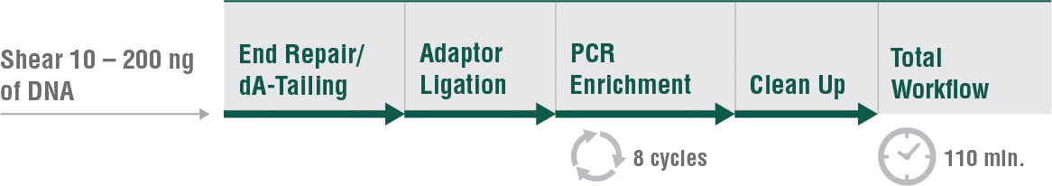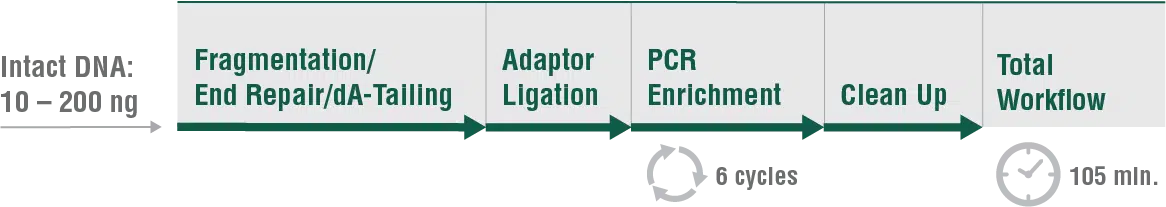 Ihr Workflow, ausgehend von Ihrer gDNA, dauert weniger als 2 Stunden.