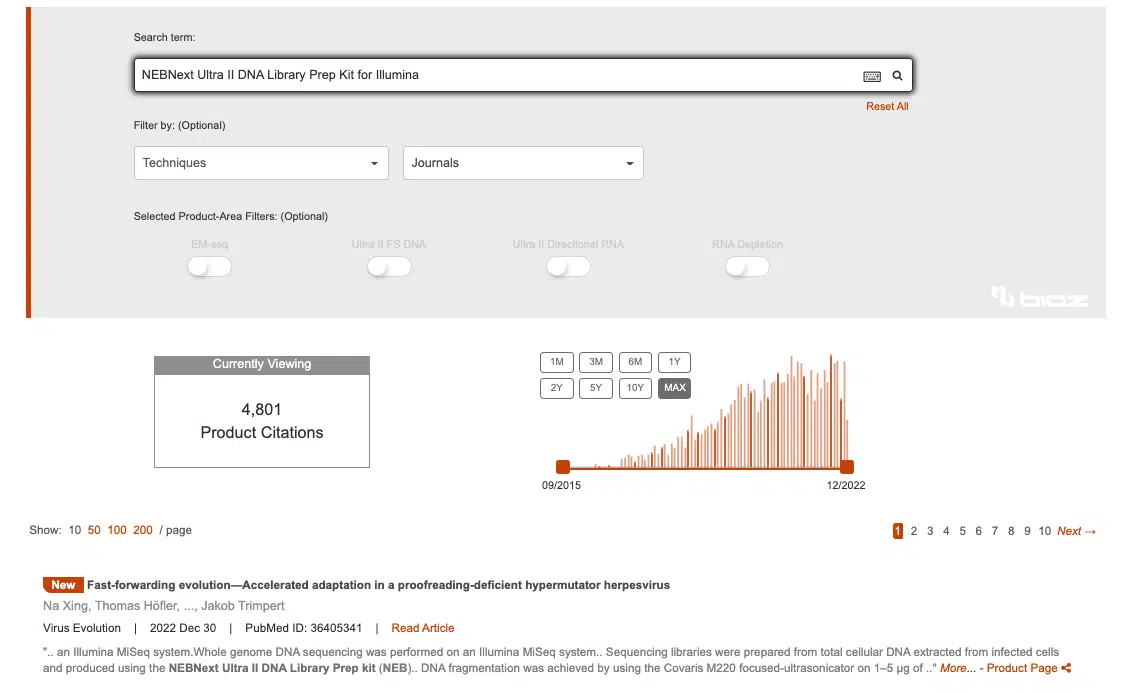 Übrigens: Bereits in über 4800 Publikationen wurden NEBNext Ultra II DNA Kits und Produkte verwendet!