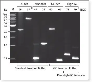 Überlegenheit der OneTaq Hot Start DNA Polymerase auf verschiedenen GC-reichen Templates